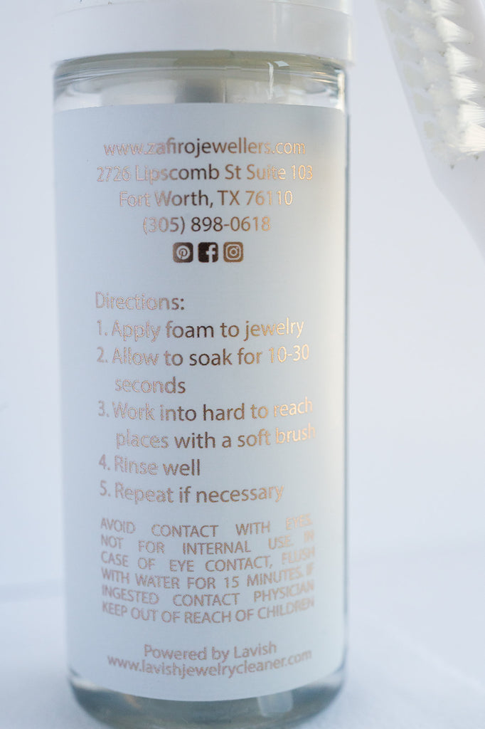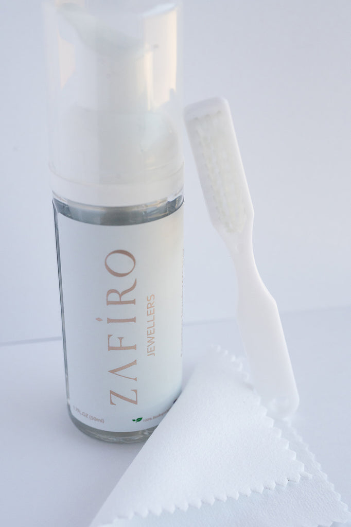 Sparkle like never before with Zafiro Jewellers' Ultimate Jewelry Cleanser! This fabulous formula brings the bling back to your favorite pieces, leaving them gleaming like new. Safe for all types of jewelry, this magical cleanser effortlessly banishes grime and restores shine. Treat your treasures to the Zafiro touch and watch them dazzle!