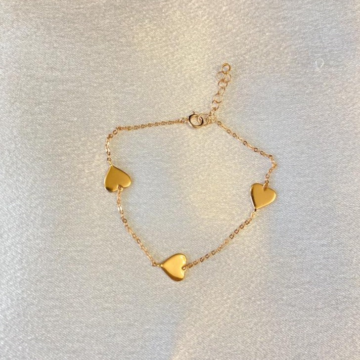 Unleash your creativity with our Tammie Bracelet! This stunning 3-heart plain bracelet is perfect for those who love a minimalist look or enjoy creating their own arm layering.