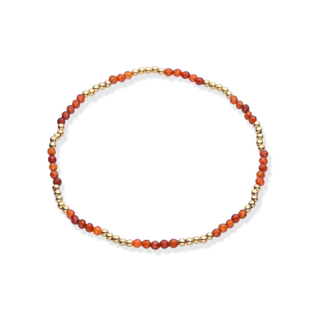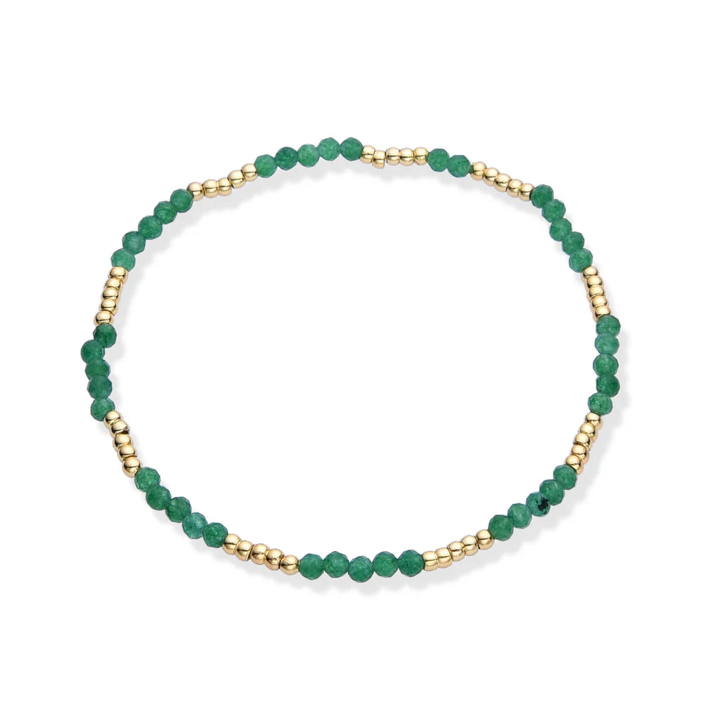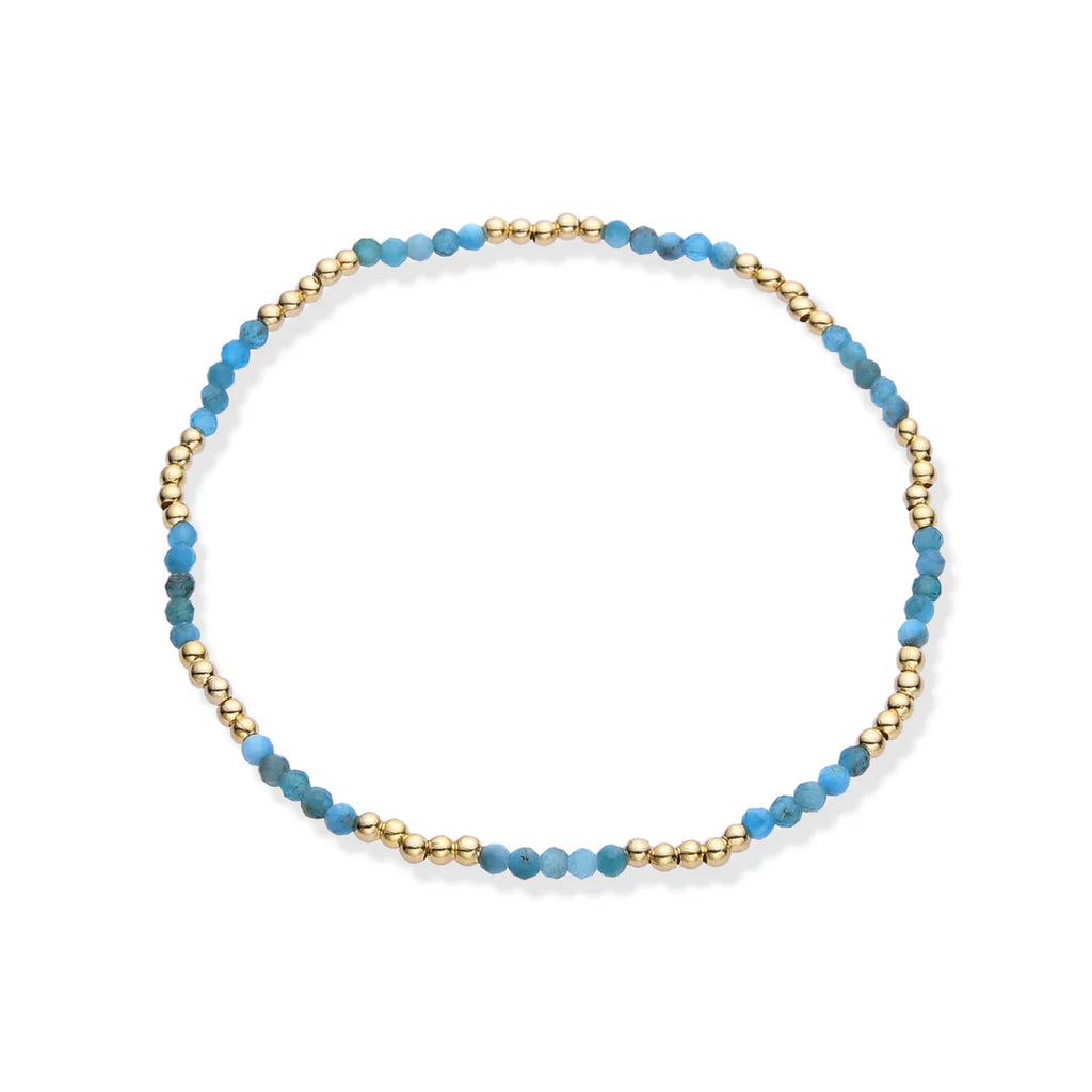 Introducing our stunning stretch bracelet, crafted with semi-precious stones and adorned with 14K gold brass beads. Available in a variety of colors, this versatile bracelet looks beautiful when stacked, adding a touch of elegance to any outfit. Perfect for achieving that effortless summer beachy look, this bracelet is a must-have accessory for your seasonal wardrobe. Enhance your style with the perfect blend of luxury and casual charm.