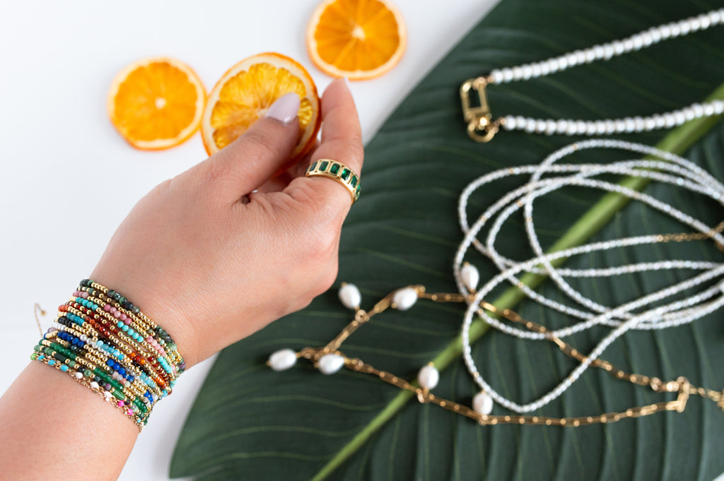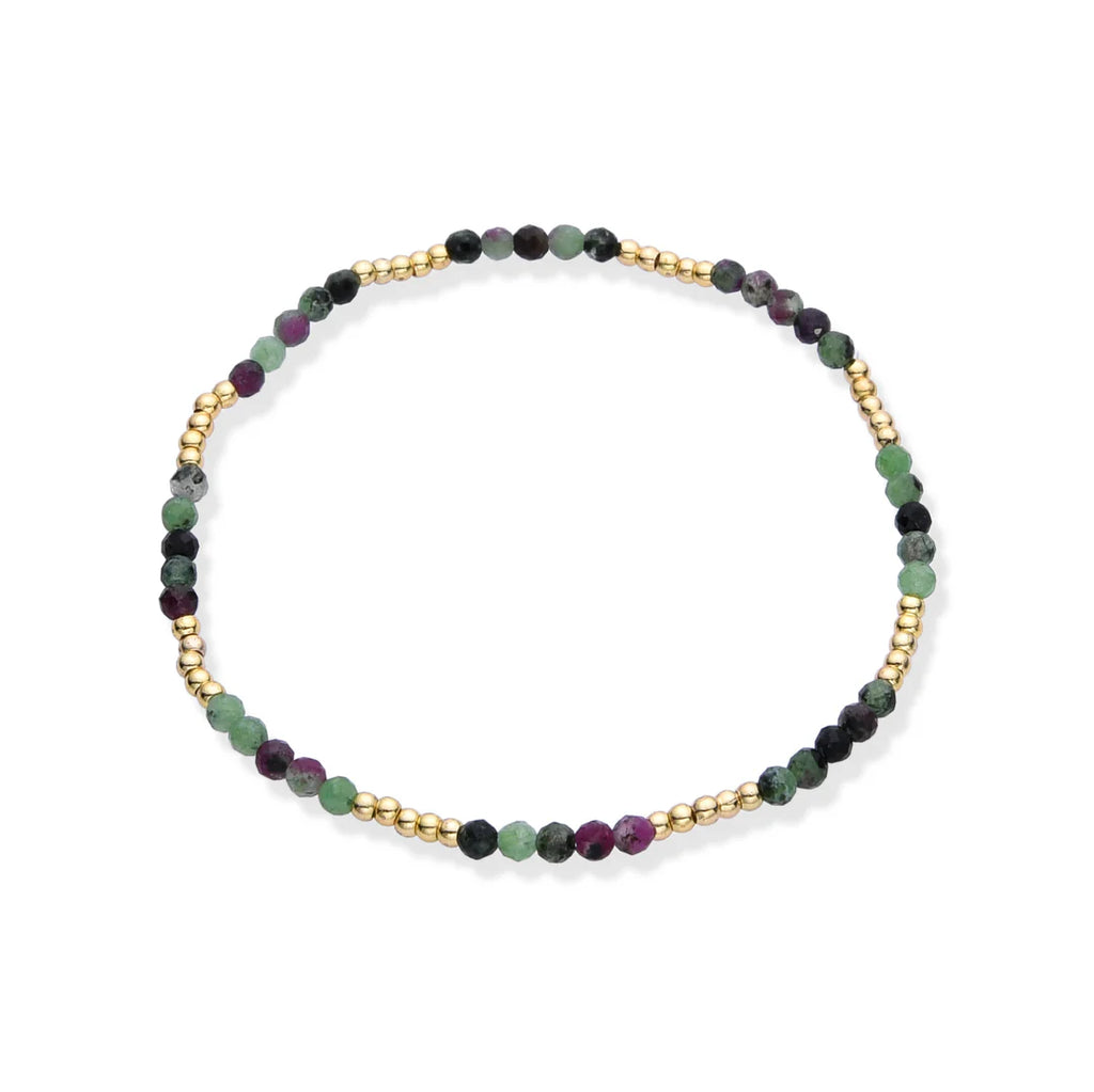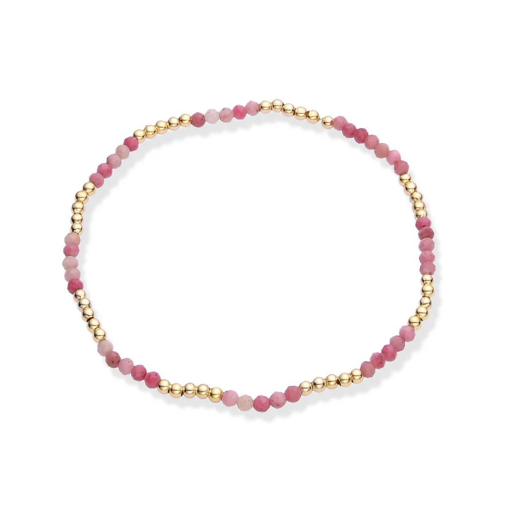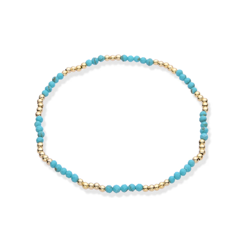 Introducing our stunning stretch bracelet, crafted with semi-precious stones and adorned with 14K gold brass beads. Available in a variety of colors, this versatile bracelet looks beautiful when stacked, adding a touch of elegance to any outfit. Perfect for achieving that effortless summer beachy look, this bracelet is a must-have accessory for your seasonal wardrobe. Enhance your style with the perfect blend of luxury and casual charm.