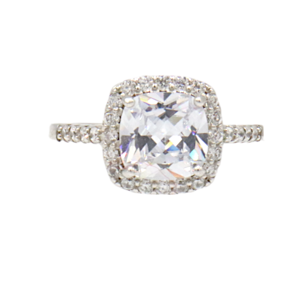 Introducing "Charlotte," a ring worthy of a queen. Discover elegance with this stunning bridal ring crafted from Silver 925 and adorned with dazzling CZ stones. Featuring a timeless cushion cut and a delicate band embellished with small CZ accents, this size 7 ring exudes sophistication and charm. Ideal for celebrating love and commitment, Charlotte is also the perfect travel ring, combining beauty and practicality for your special day and beyond.