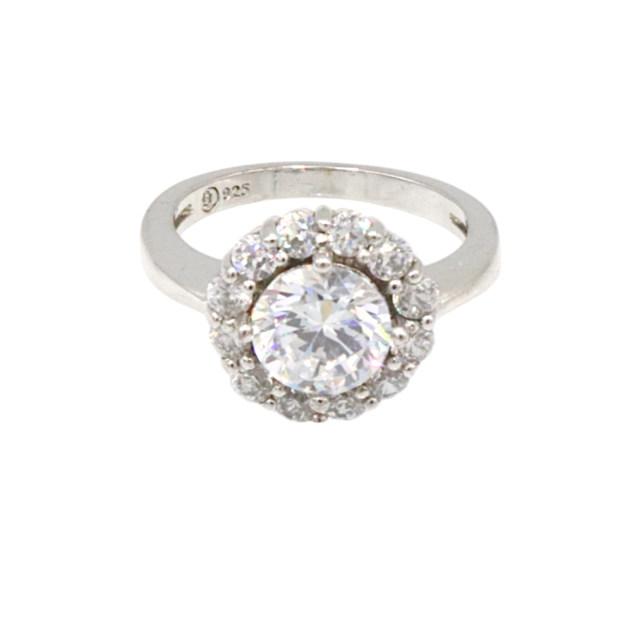 Discover the timeless elegance of our Silver 925 Bridal Ring, featuring a stunning round center stone, gracefully encircled by sparkling CZ stones. Crafted from high-quality 925 sterling silver, this ring offers both durability and a radiant shine, perfect for your special day. Available in size 6.5, it ensures a perfect fit, making it an exquisite addition to your bridal ensemble. Let this dazzling ring symbolize your love and commitment with its sophisticated design and unparalleled sparkle.