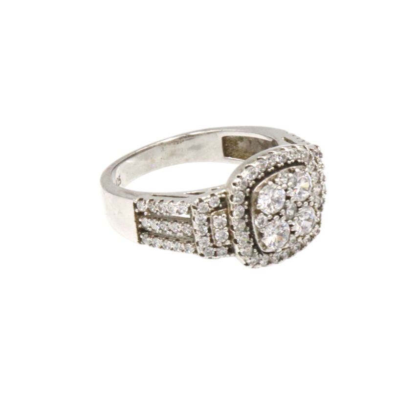 Introducing our exquisite Bridal Ring, a timeless symbol of elegance and love. Crafted from high-quality Silver 925, this stunning piece features a thick band adorned with shimmering smaller cubic zirconia (CZ) stones, adding a touch of sparkle to every angle. At the heart of this sophisticated design lies a captivating cluster of CZ stones, meticulously arranged to create a dazzling centerpiece. Available in size 6, this ring is perfect for celebrating your special moments with grace and sophistication. Let this beautiful cluster ring be the crowning jewel of your bridal ensemble.