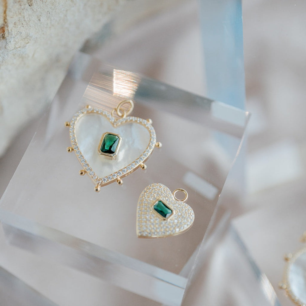 Discover the enchanting Allegra heart-shaped charm collection, a testament to timeless elegance and vibrant hues. Crafted with exquisite detail, each Allegra charm is named after the Italian word for 'joy,' embodying its essence in every design. Available in a spectrum of captivating colors including Yellow Green Malachite, Mother of Pearl, and sleek Black, these charms add a touch of sophistication to any ensemble. Elevate your style and embrace joy with Allegra's radiant charm.