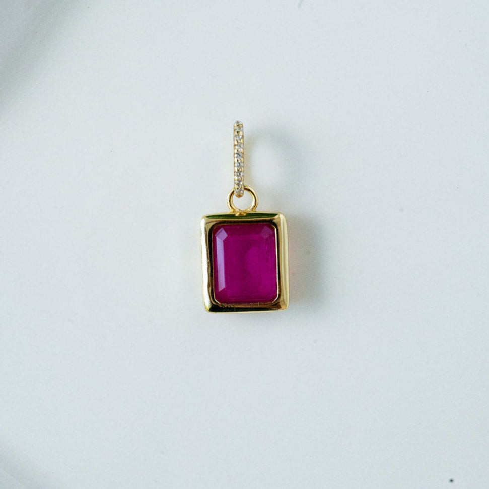 Stones: Emerald Cut - Bell with cubic zirconia with colors blue sapphire, green emerald, pink fuchsia and Turquoise.