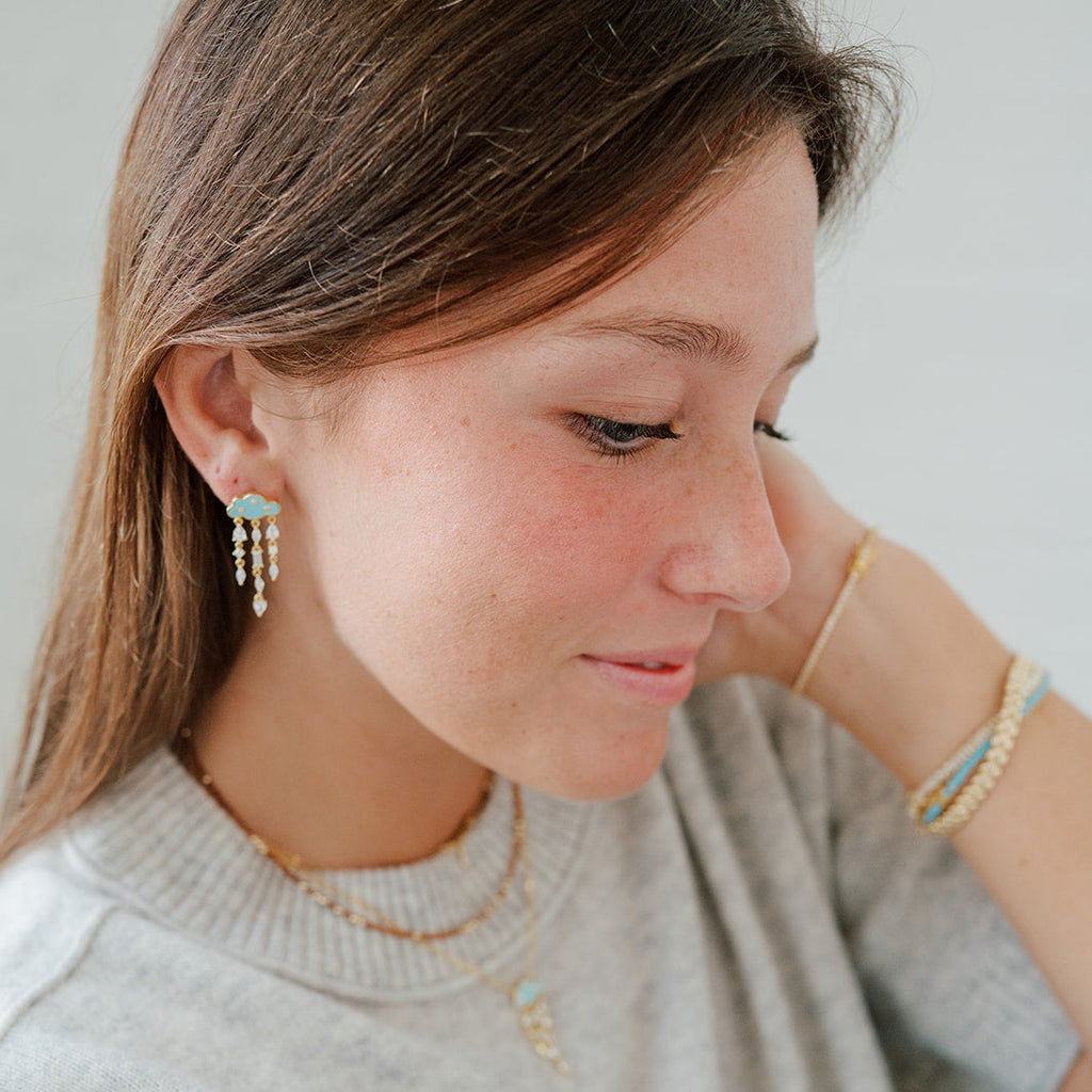 Airy, luminous, and effortlessly chic, the Brava Cloud Earrings are designed for the woman who loves pieces that feel as light as they look. Crafted from 925 sterling silver with gold plating, these elegant earrings are adorned with cubic zirconia, mother of pearl, or turquoise, creating a harmonious blend of shimmer, softness, and color.