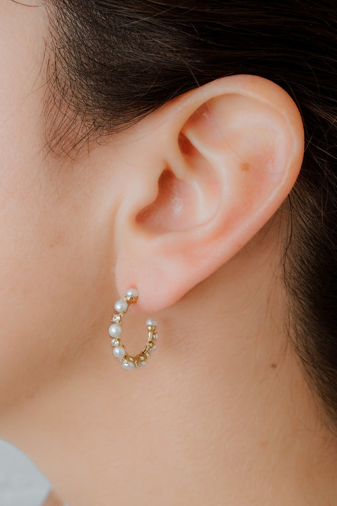 Earring Pearl Studded Mini Hoops- 22mm- 11143