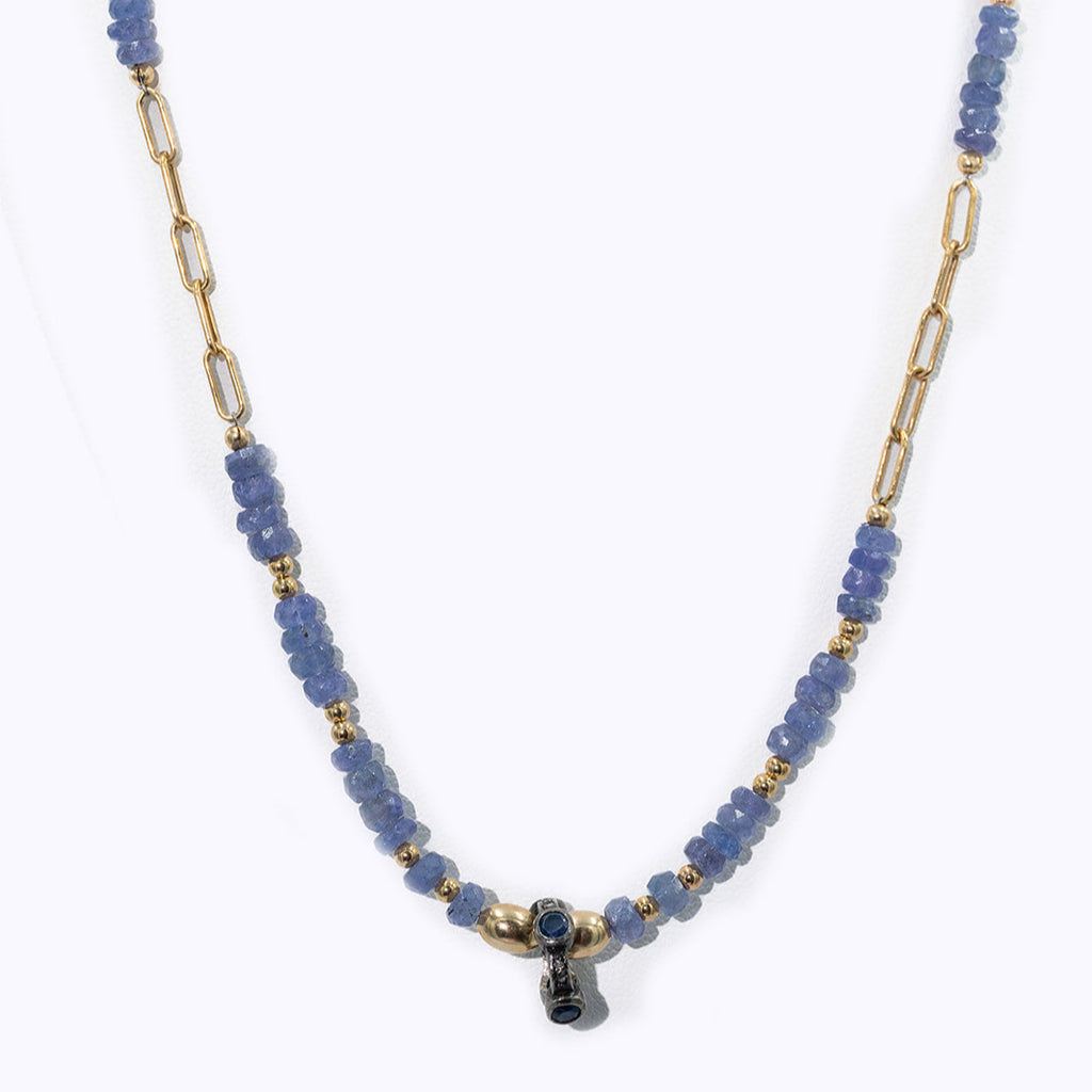 Boho CH29 Necklace- Pink Silverite w/ purple, Pink Silverite w/ turquoise, Tanzanite, and Multi Sapphire w/ turquoise