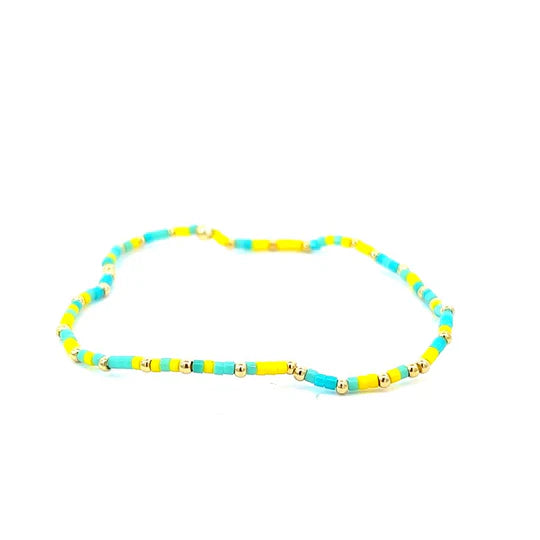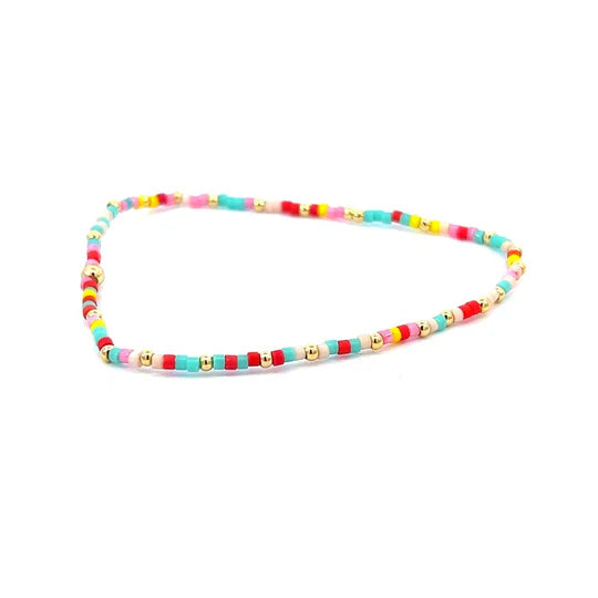 Discover the vibrant charm of our handmade Miyuki Beads Bracelet, featuring a stunning combination of colors. Crafted with care in Colombia, this adjustable bracelet is designed to fit comfortably on any wrist. The gold string adds a touch of elegance, making it a versatile piece for both everyday wear and special occasions. Embrace the spirit of adventure and let this bracelet become a cherished part of your jewelry collection, perfect for expressing your unique style.