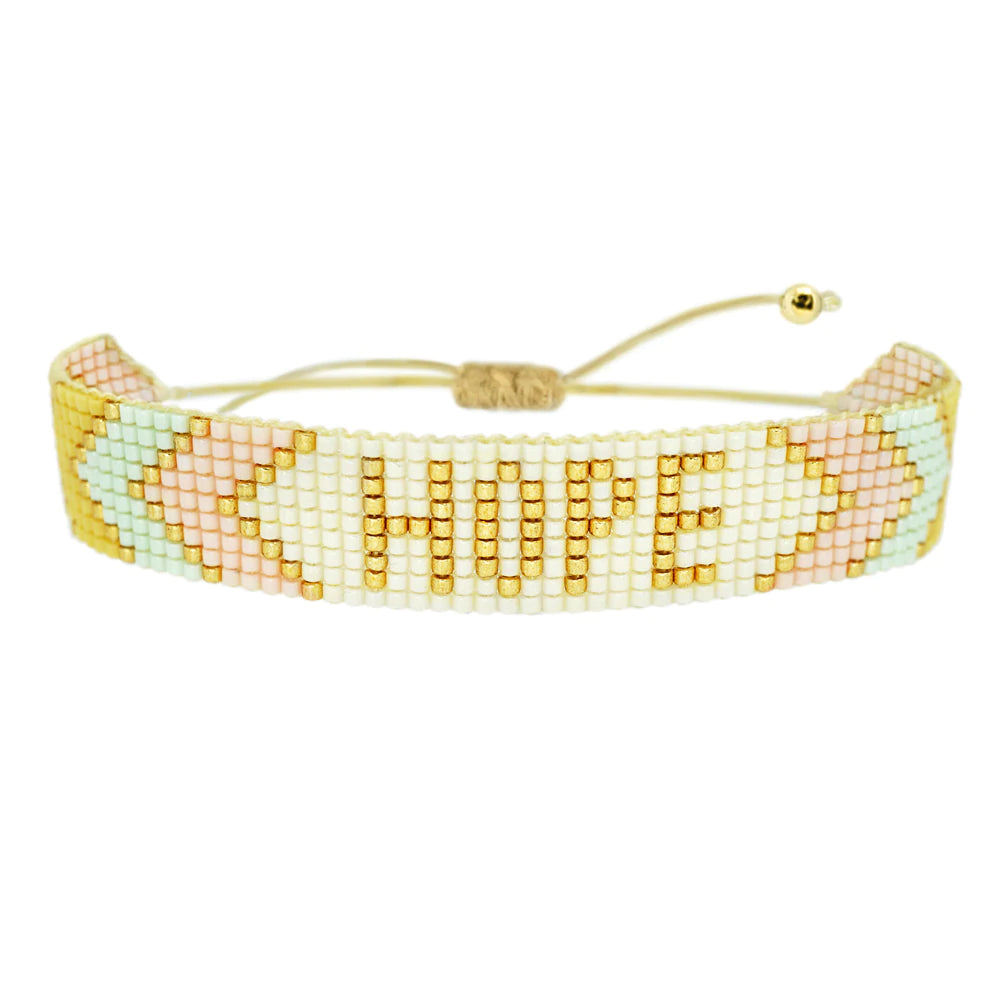 Elevate your spring and summer style with the exquisite Japanese Miyuki Beads. These beads are ideal for stacking and crafting arm candy that reflects your unique fashion sense. The bracelet, adorned with these beads, showcases a captivating geometric design inspired by the rich cultural heritage of the Chevron tribe. It serves as the perfect accessory to effortlessly create a stylish arm candy look this season.