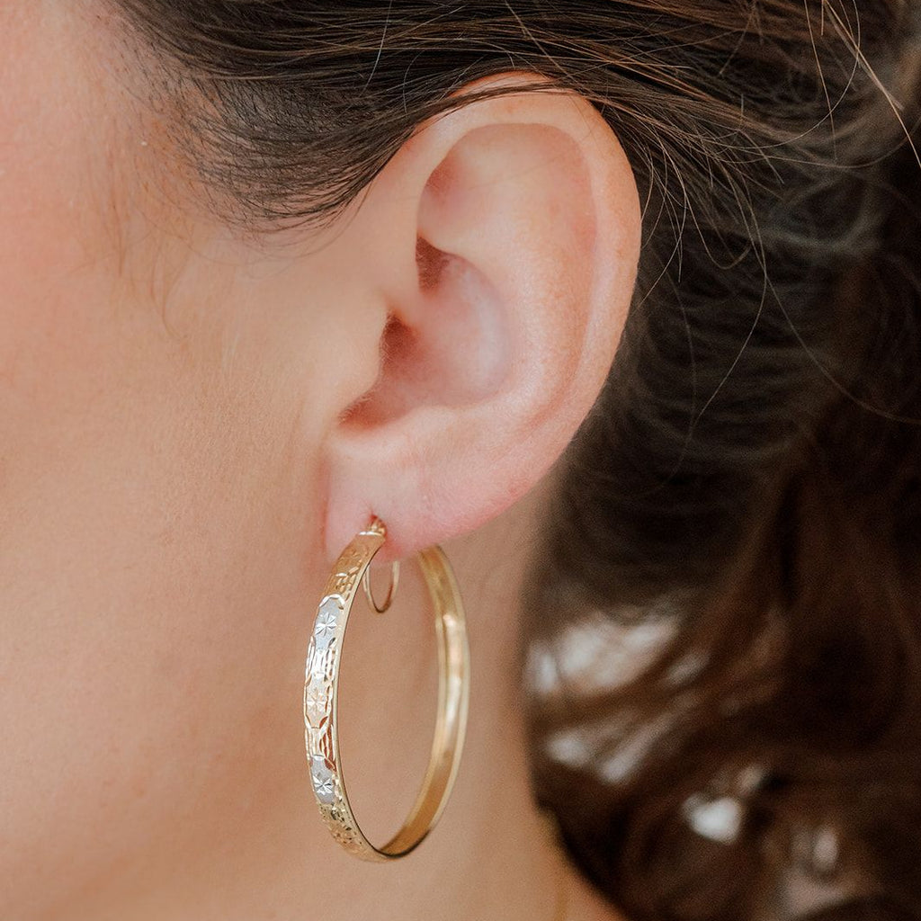 Earring Gold Stamped Textured Hoops