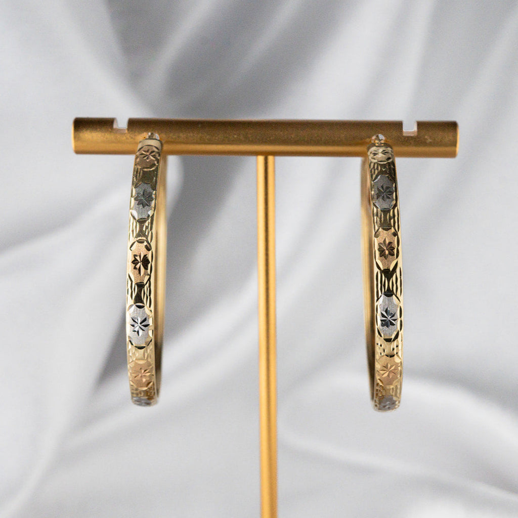 Earring Gold Stamped Textured Hoops