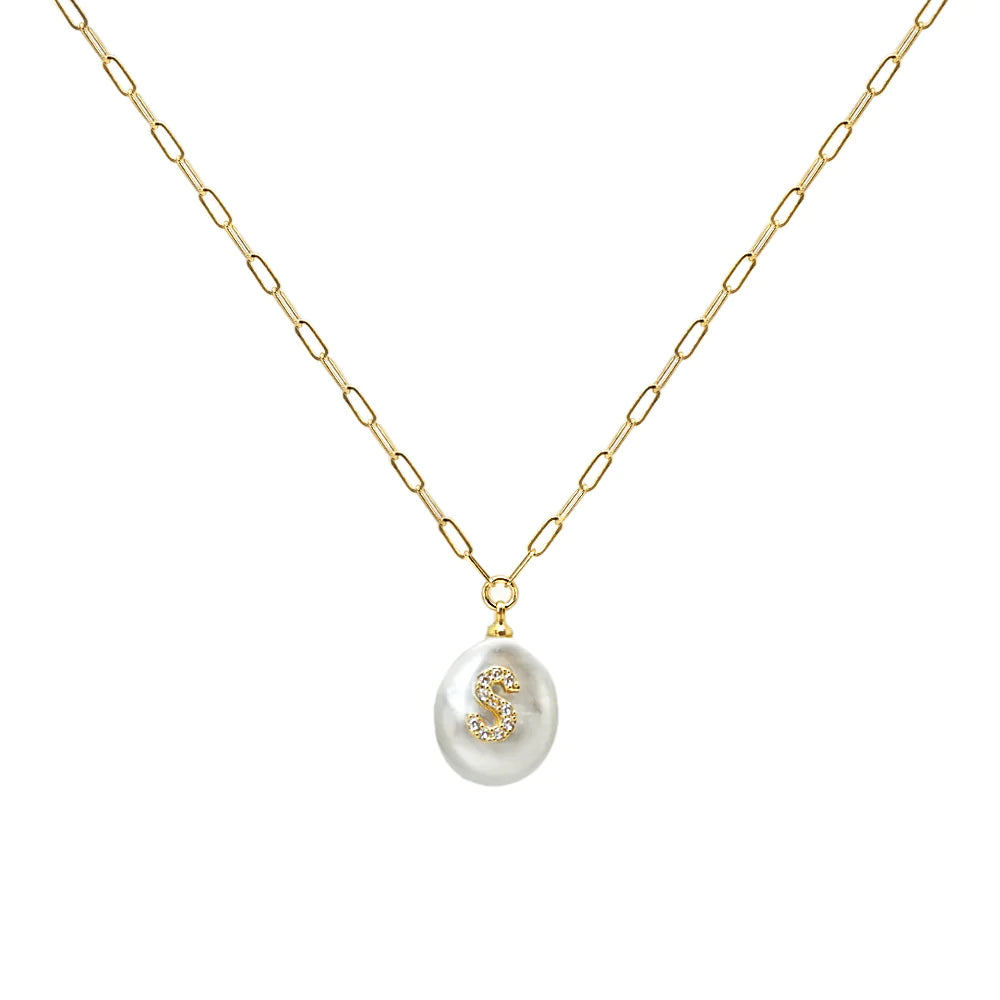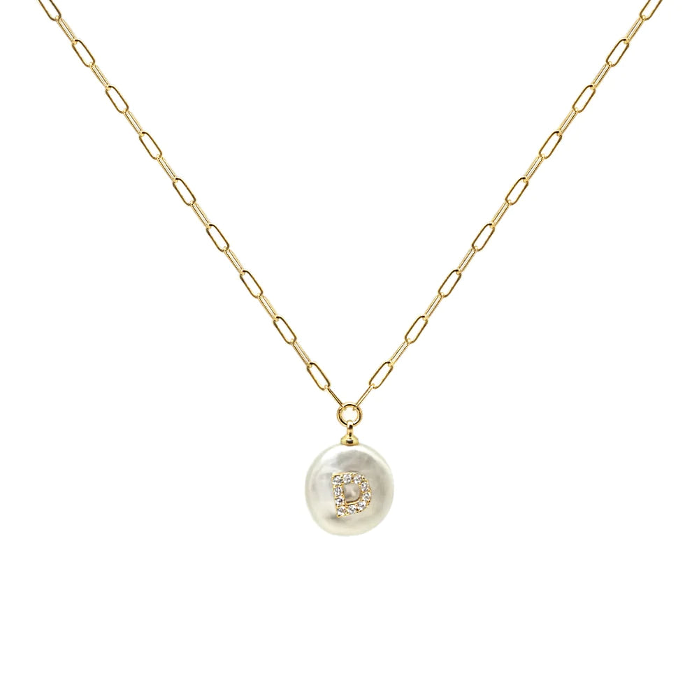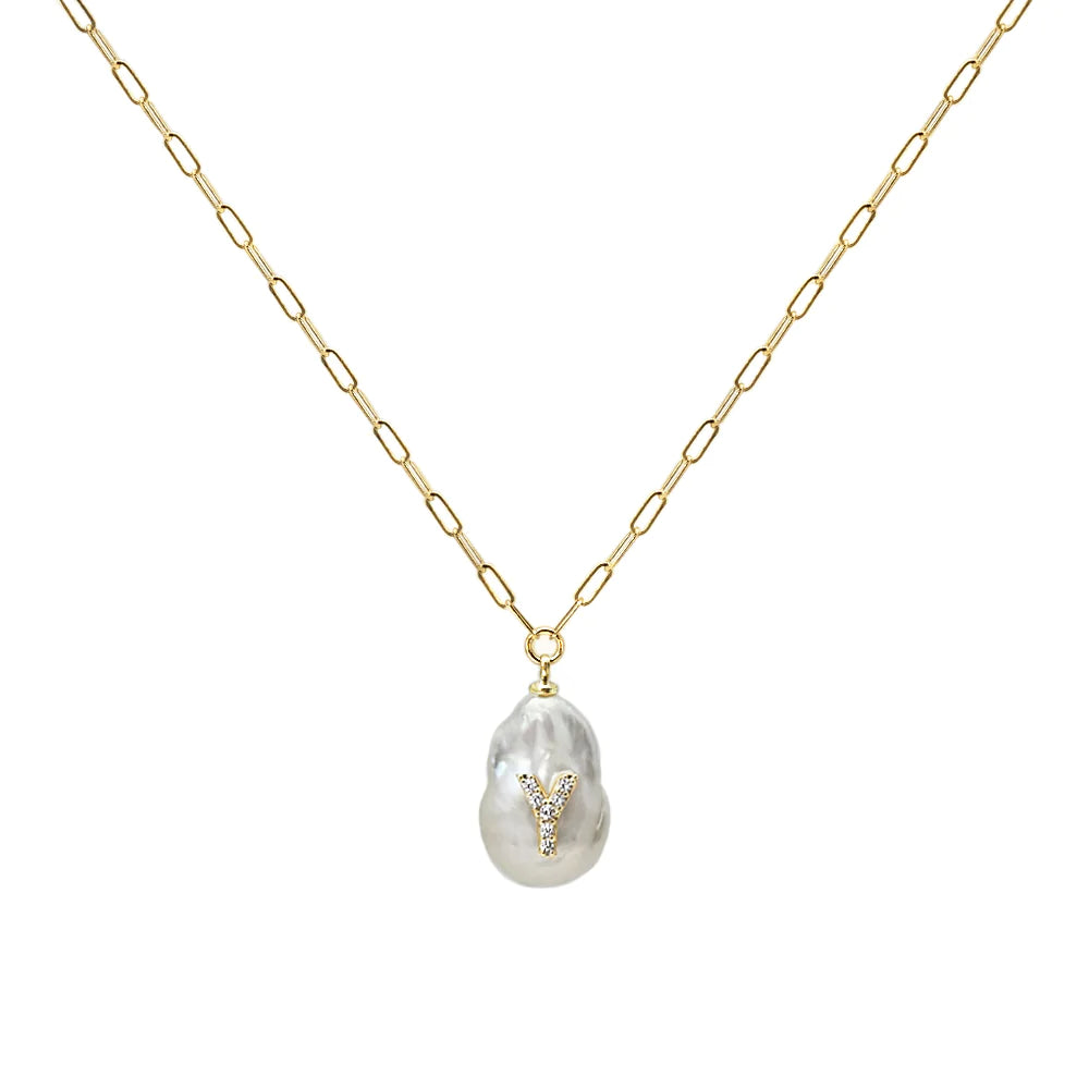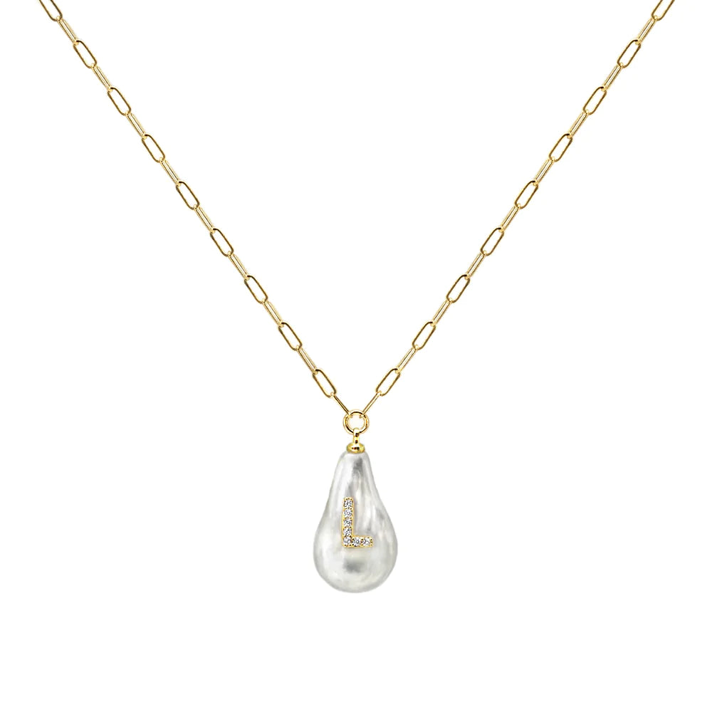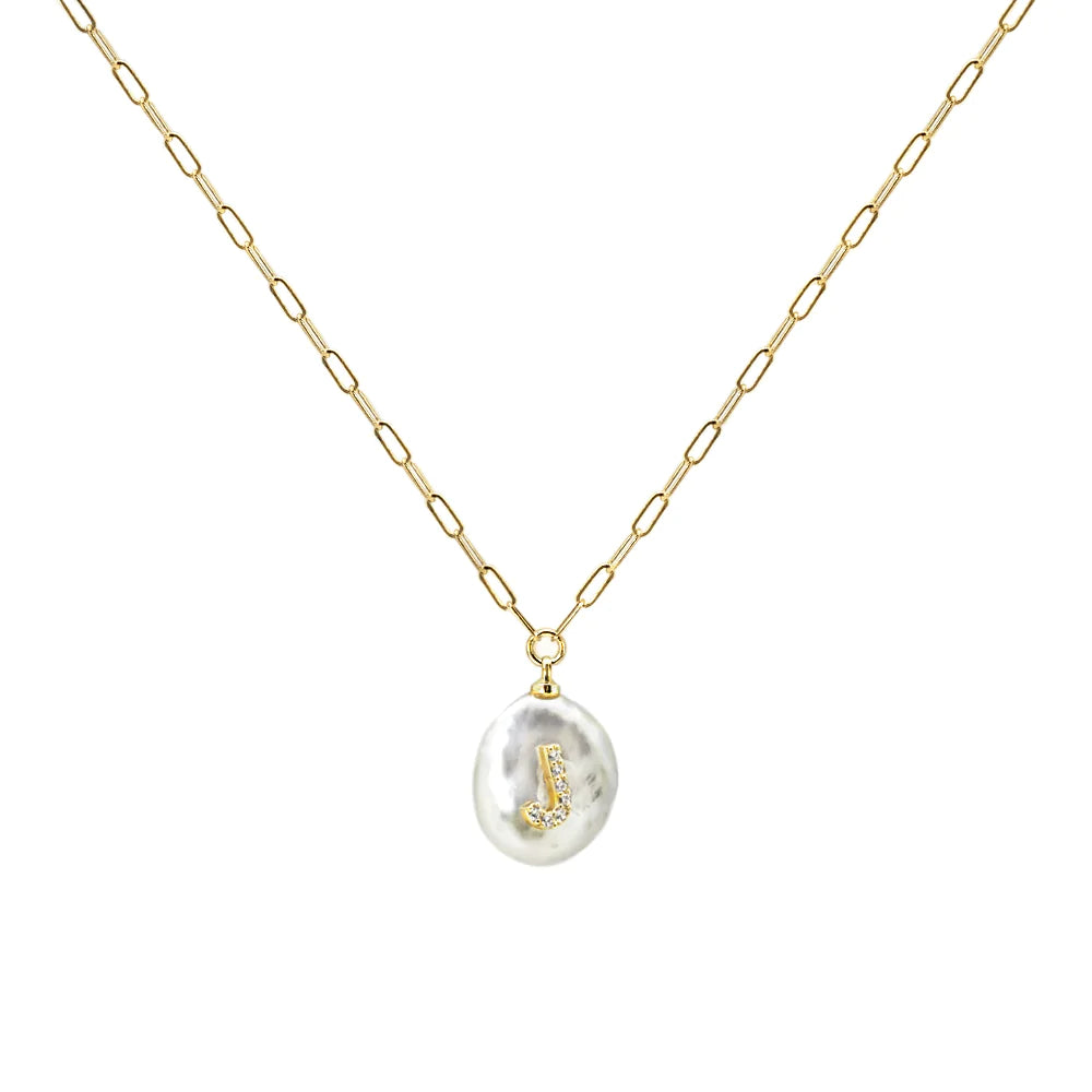 Introducing the exquisite Lucia Pearl Necklace - a one-of-a-kind piece of jewelry that is sure to capture your heart. This stunning design features a lustrous freshwater pearl with an initial delicately mounted on it. The beauty of this necklace lies in the fact that each pearl is unique, ensuring that every piece is a true original. Please note that due to the natural variations in the pearls, the shape of the pearl in your necklace may differ slightly from the one shown in the picture.