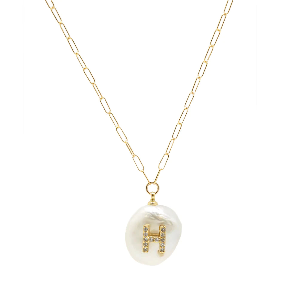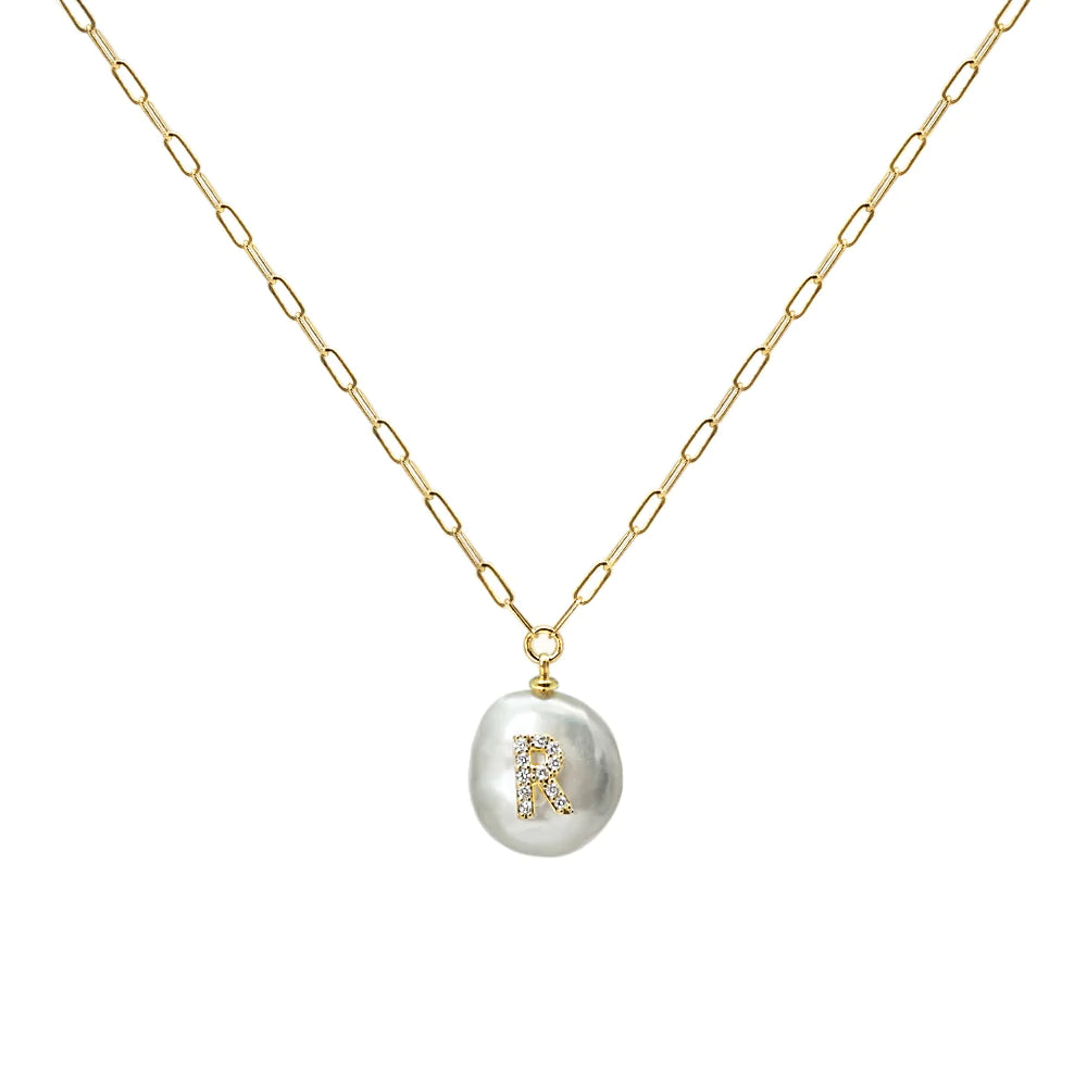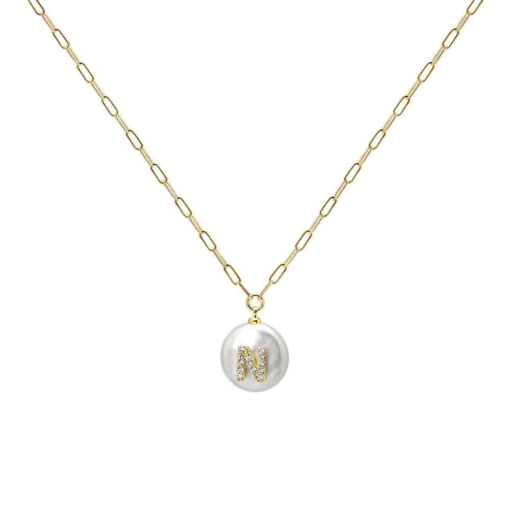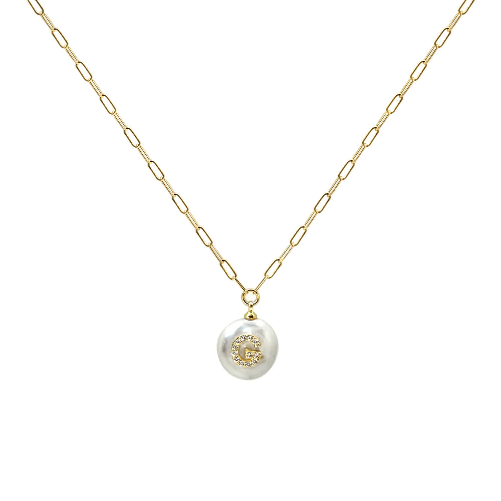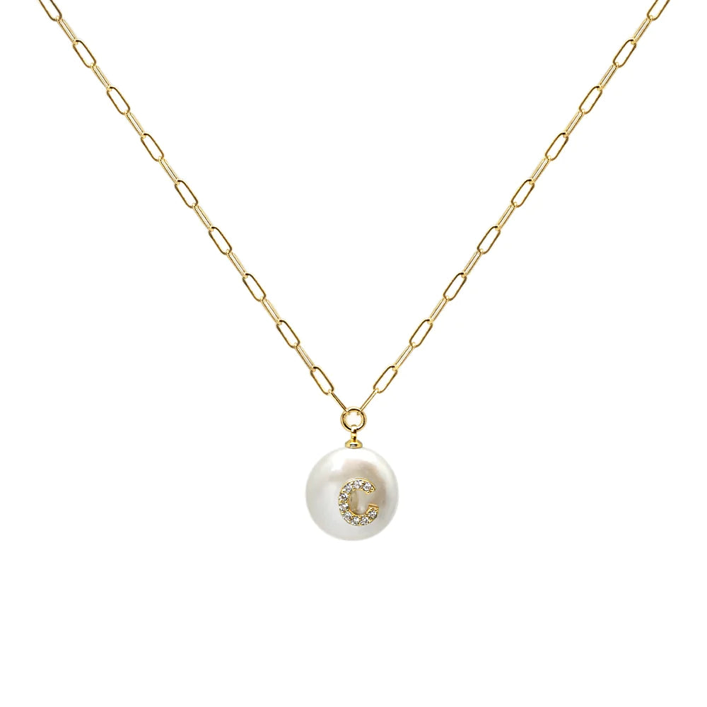 Introducing the exquisite Lucia Pearl Necklace - a one-of-a-kind piece of jewelry that is sure to capture your heart. This stunning design features a lustrous freshwater pearl with an initial delicately mounted on it. The beauty of this necklace lies in the fact that each pearl is unique, ensuring that every piece is a true original. Please note that due to the natural variations in the pearls, the shape of the pearl in your necklace may differ slightly from the one shown in the picture.