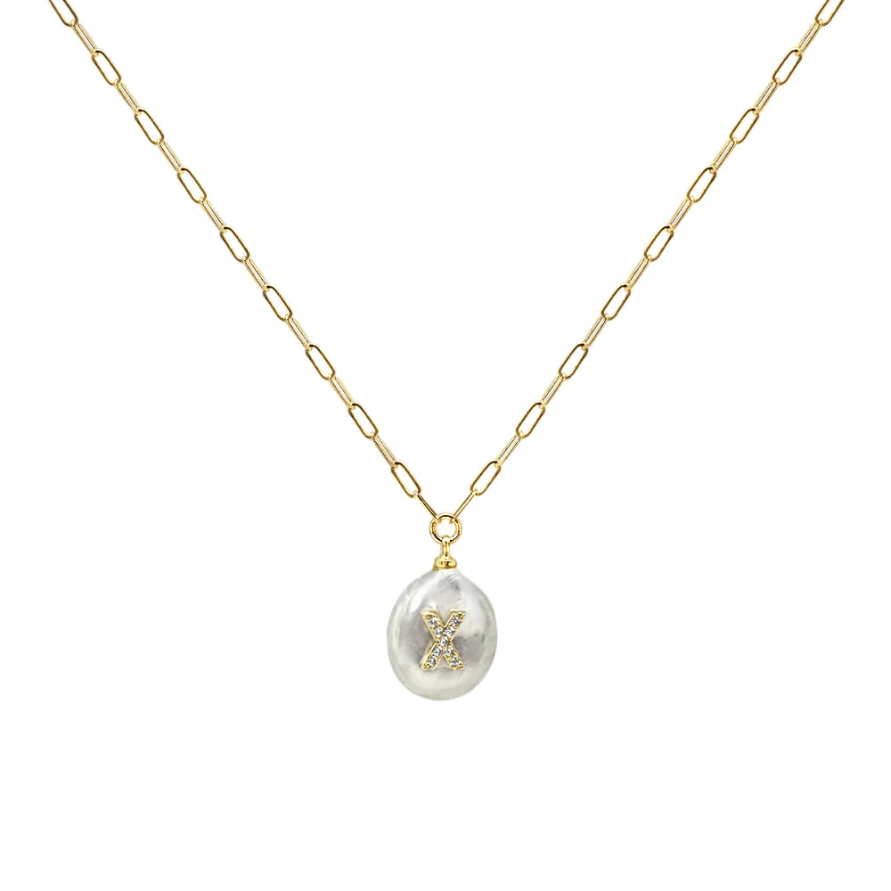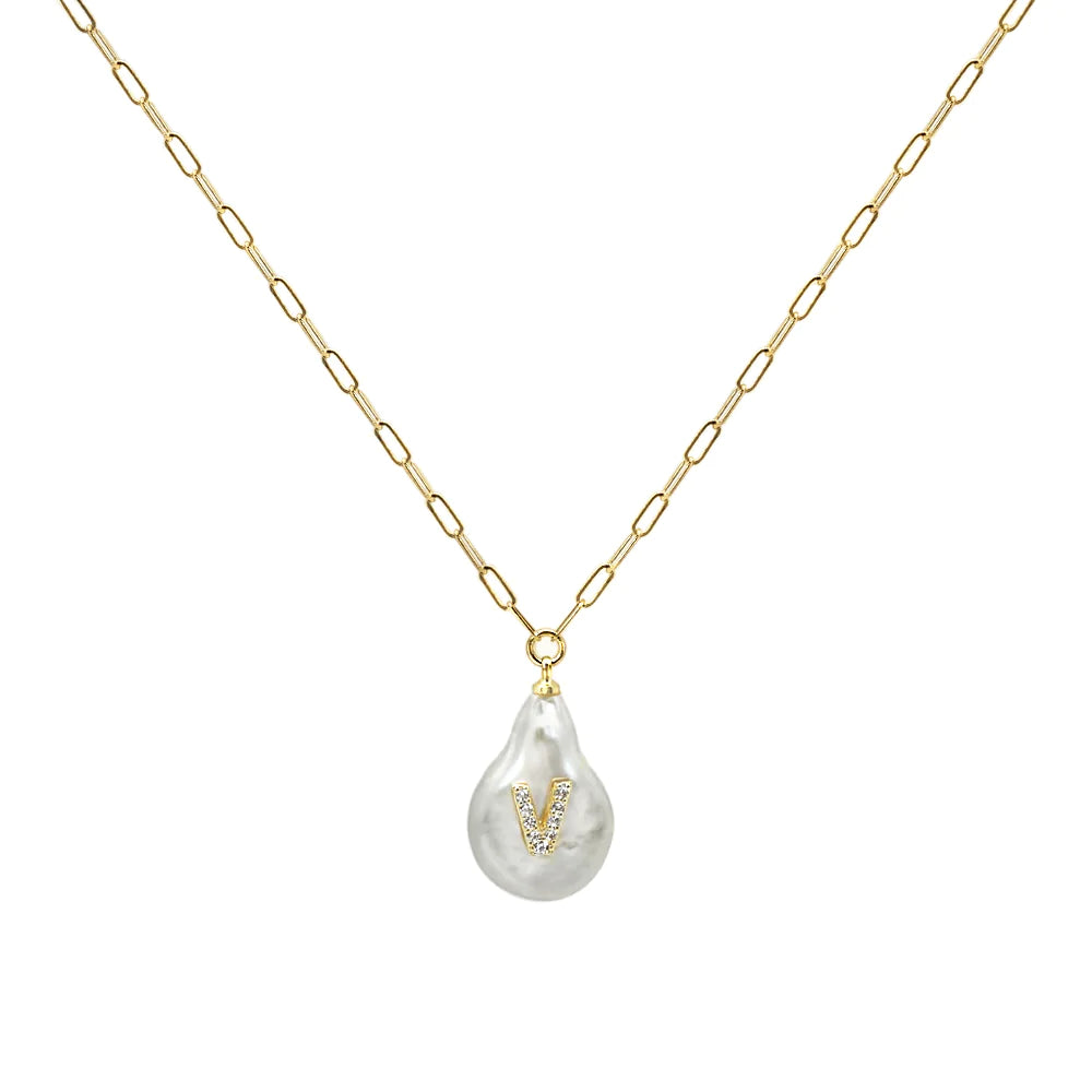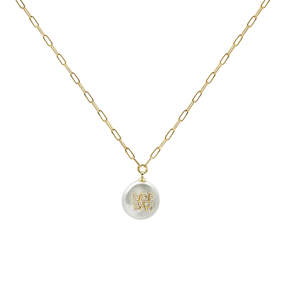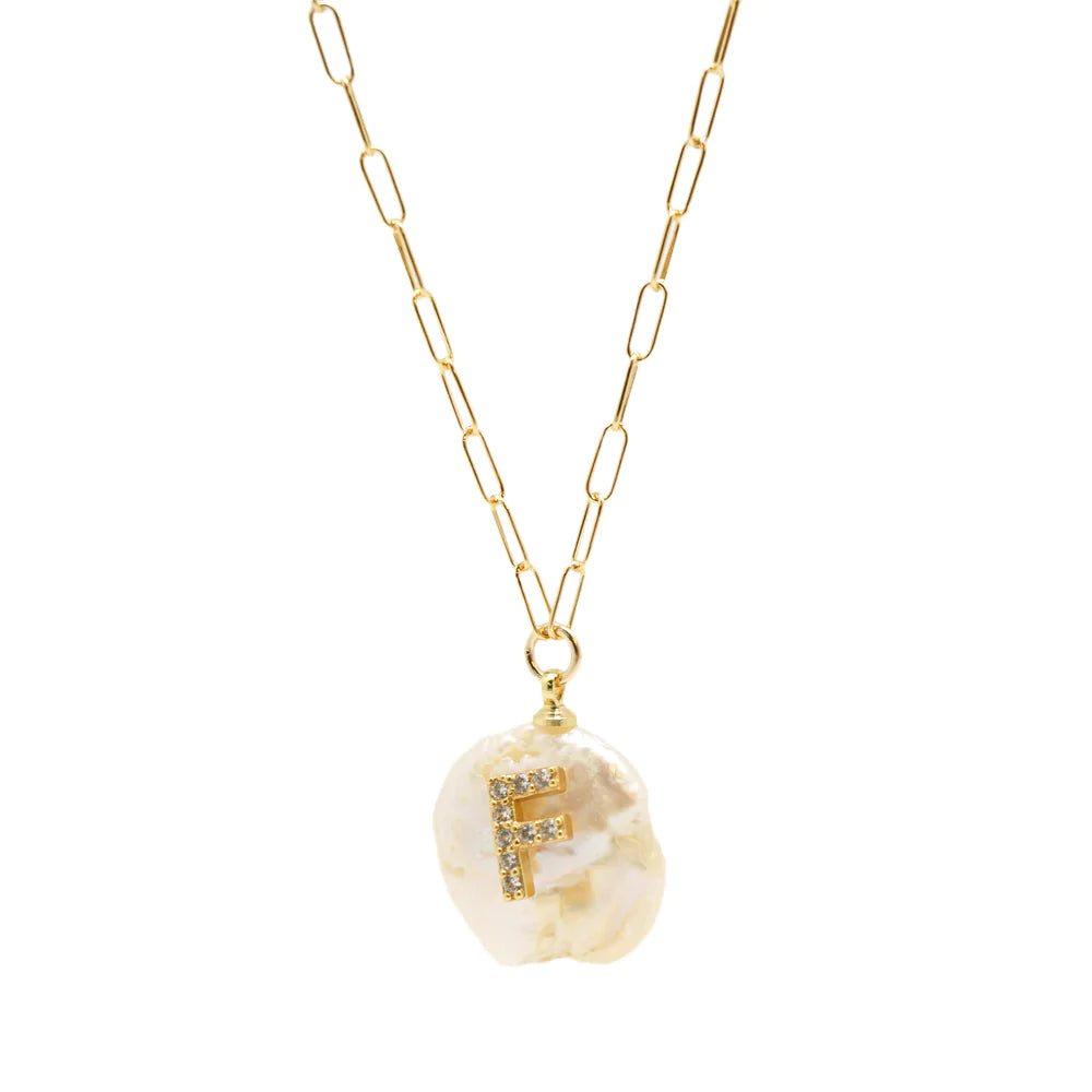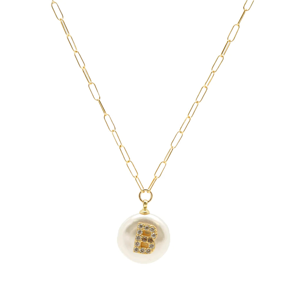 Introducing the exquisite Lucia Pearl Necklace - a one-of-a-kind piece of jewelry that is sure to capture your heart. This stunning design features a lustrous freshwater pearl with an initial delicately mounted on it. The beauty of this necklace lies in the fact that each pearl is unique, ensuring that every piece is a true original. Please note that due to the natural variations in the pearls, the shape of the pearl in your necklace may differ slightly from the one shown in the picture.