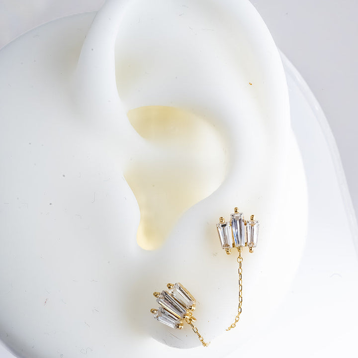 Earring Baguette Piercing With Chain