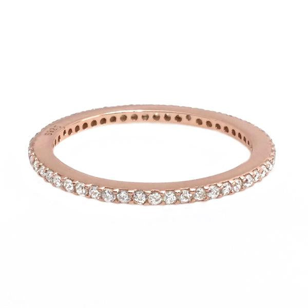 One of the best things about the CZ mini eternity band is that it complements other rings beautifully. You can wear it alone for a simple yet sophisticated look, or you can pair it with other rings for a bolder statement. It also works perfectly as a stacking ring, enhancing the beauty of your engagement ring with its exquisite design.
