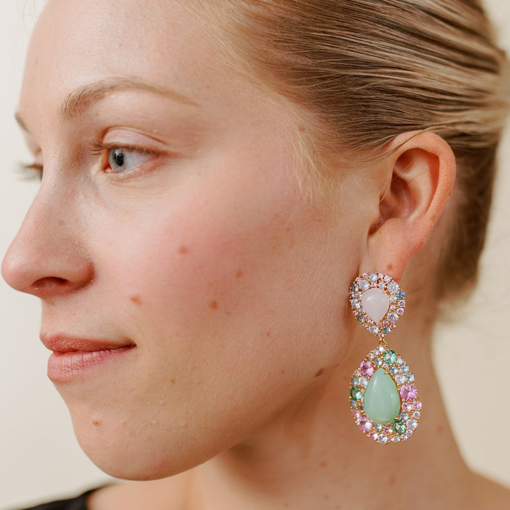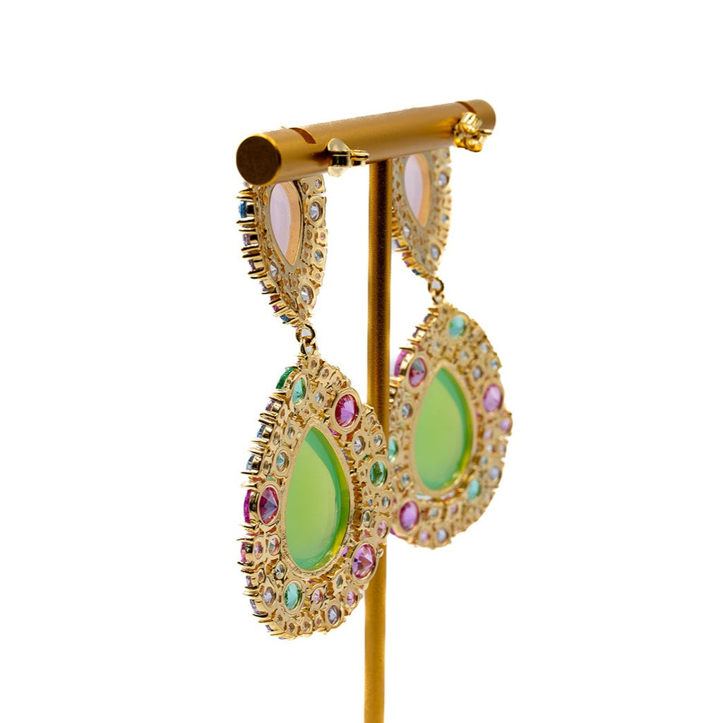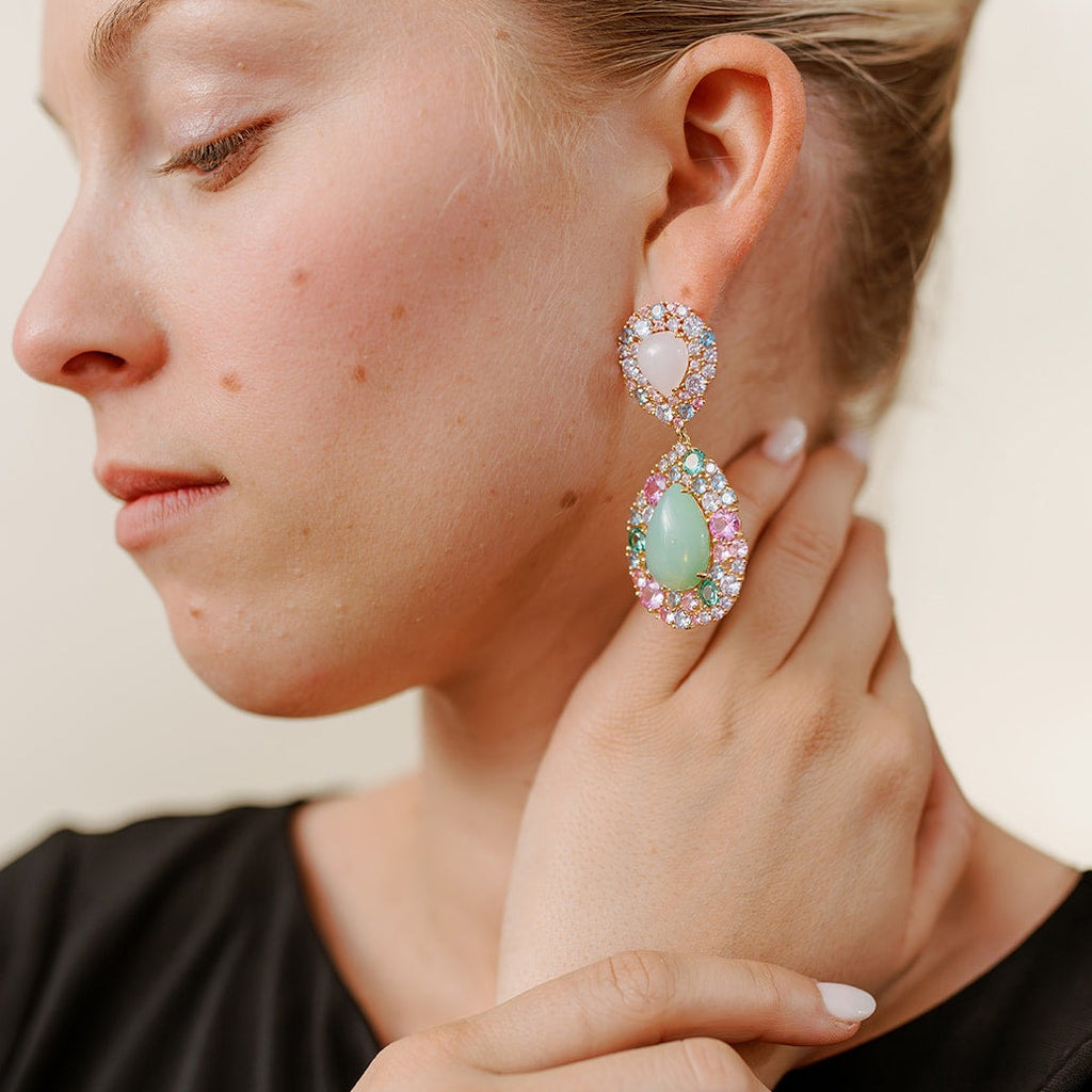 At Zafiro Jewellers, we believe that a great pair of earrings can make or break an outfit. While classic earrings are always in style, we also love to create pieces that stand out and make a statement. Our latest creation, the long and colorful zirconia earrings, are the perfect addition to your jewelry collection. These earrings feature a mix of vibrant zirconias and classic quartz, making them the perfect choice for a night out on the town. Their unique design and stunning colors will ensure that you are the belle of the ball, turning heads and stealing the show wherever you go. Shop with us today and discover the perfect pair of earrings to complete your look!