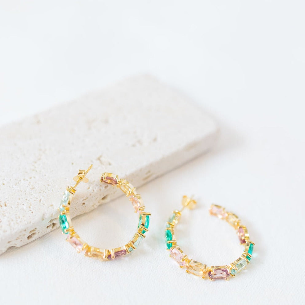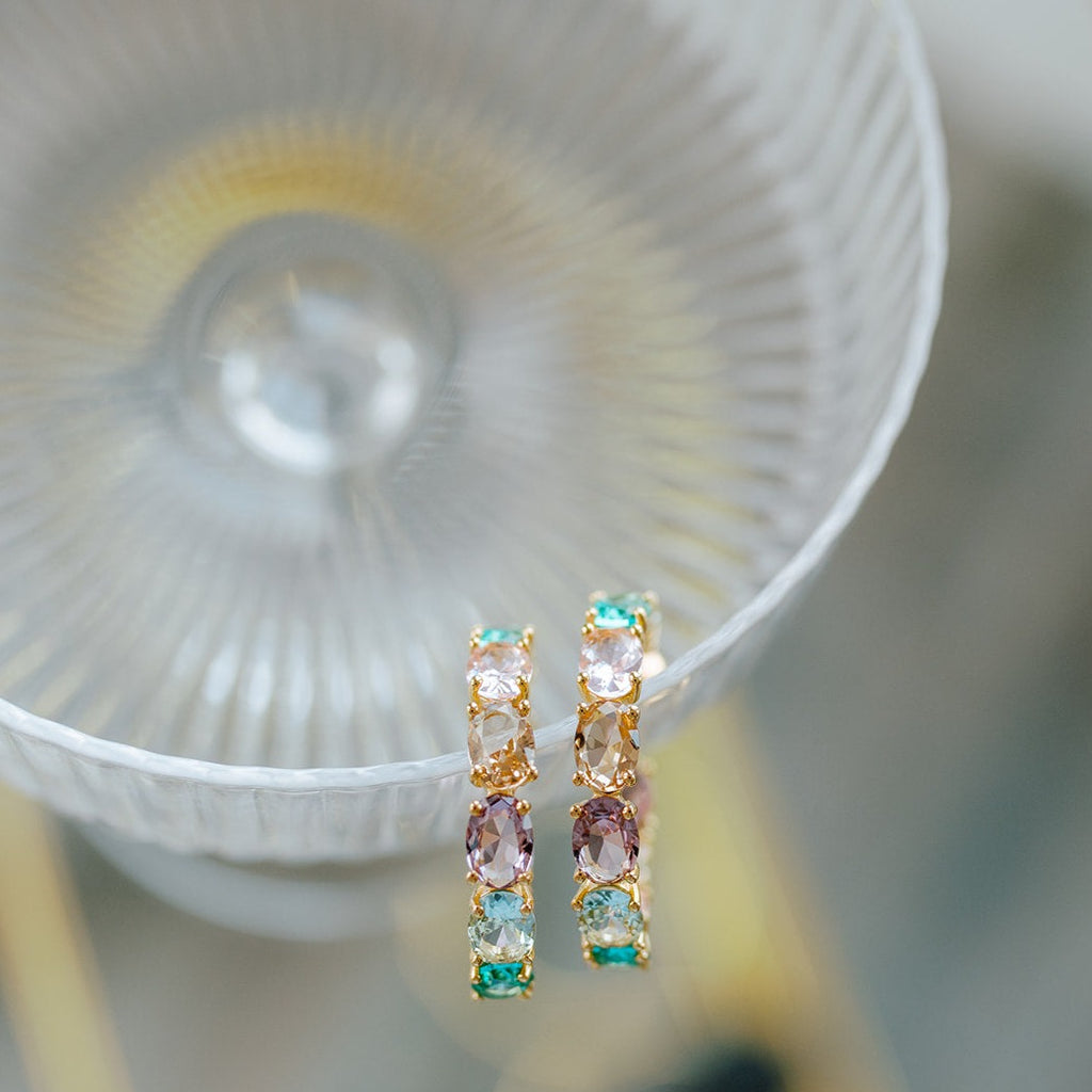 These earrings are perfect for adding a pop of color to any outfit. Made with high-quality zirconia stones, these hoops come in bright and bold colors that will surely catch the eye. The lightweight design ensures that they are comfortable to wear all day long, while the sturdy closure ensures that they stay securely in place. These colorful zirconia earrings hoops are a great addition to any jewelry collection, and can be worn for any occasion, from casual outings to formal events.