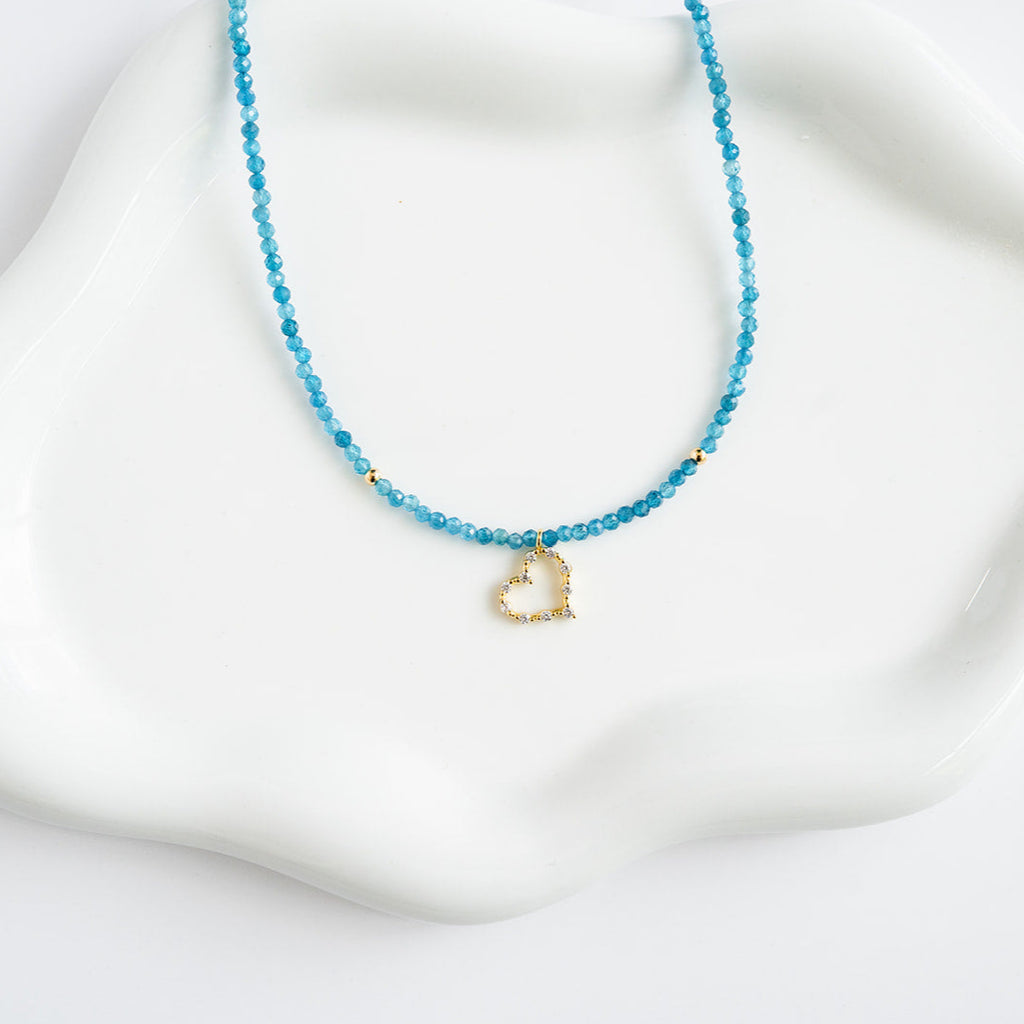 Dive into color with the Capri Necklace, a vibrant choker that channels the refreshing energy of the Mediterranean. Crafted with natural Apatite stones, this piece captures the essence of ocean blues—bold, bright, and endlessly captivating.