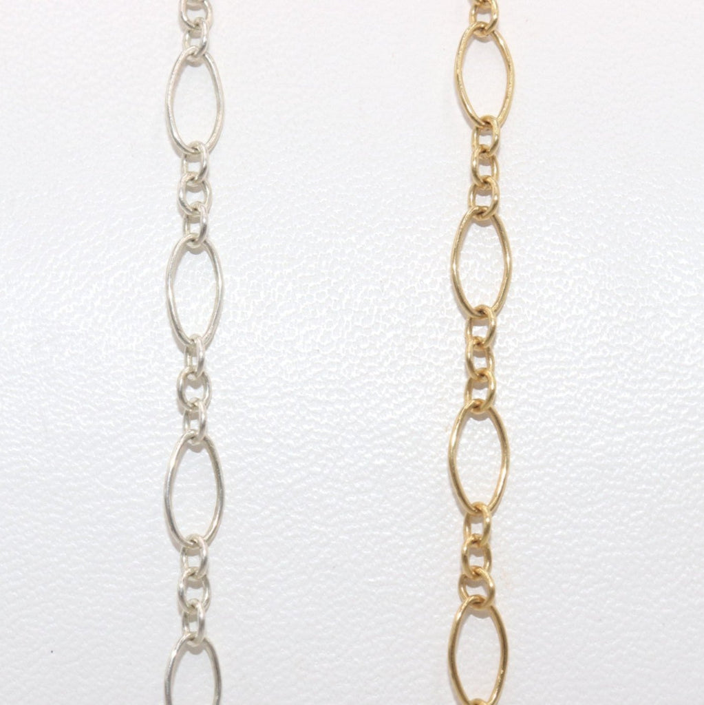 Our Classic Chain style is dainty and minimal. We carry the following chain style on a great metal quality such has GoldFilled 14 KT yellow & Rose and Silver 925 white. The chain sizes are under 2MM for a simple & classic look. Perfect for everyday wear and you will not feel it on your skin.