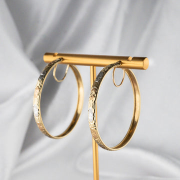 Earring Gold Stamped Textured Hoops